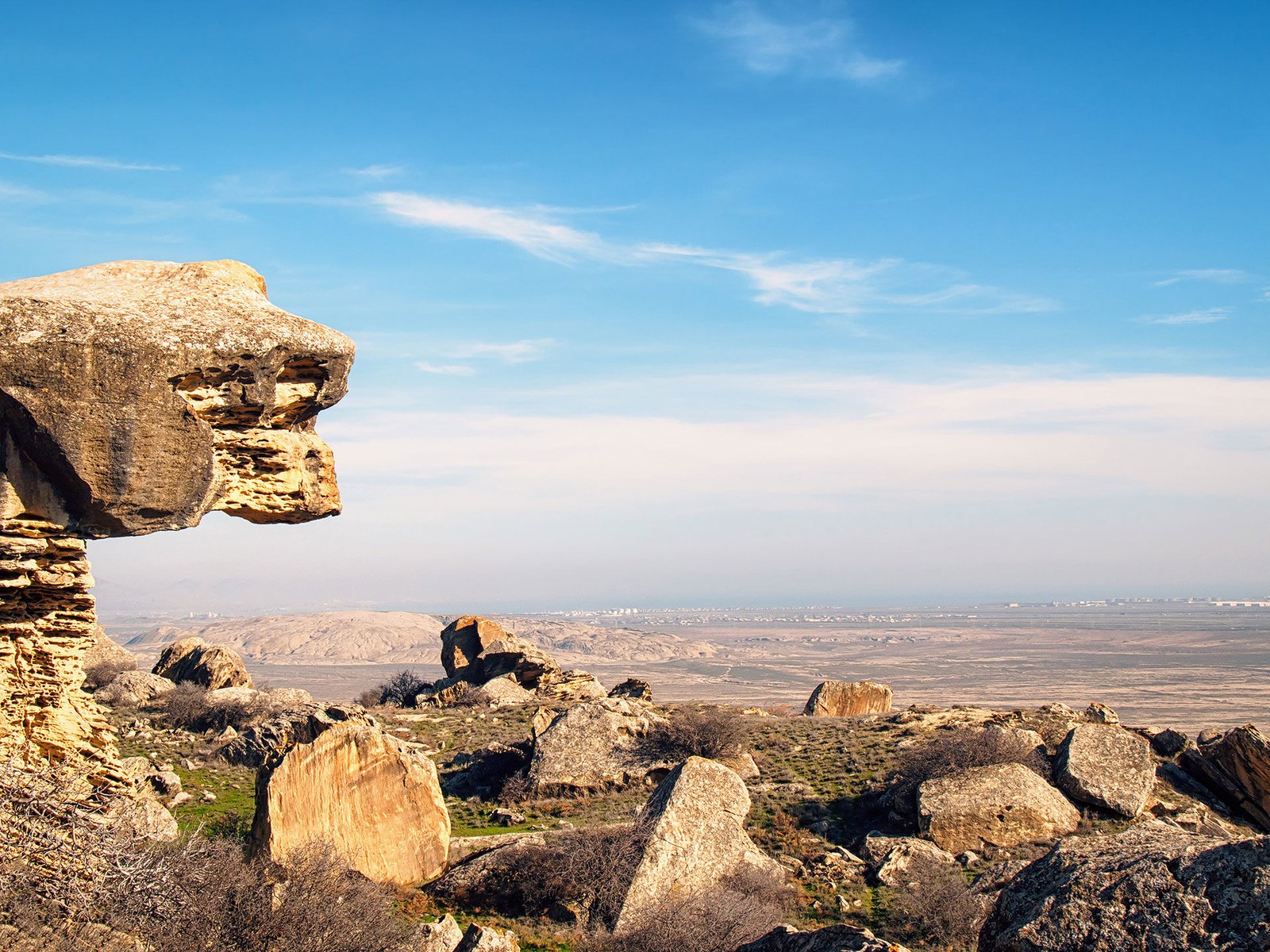 Established in 1966 and covering 537 ha, the Gobustan State Reserve is located amid the Boyukdash, Kichikdash and Jingirdagh mountains, about 60 kilometres south of Baku. Besides all the breathtaking rock art, visitors can also explore the remains of caves, settlements and burial grounds used by humans between the Upper Paleolithic and the Middle Ages.